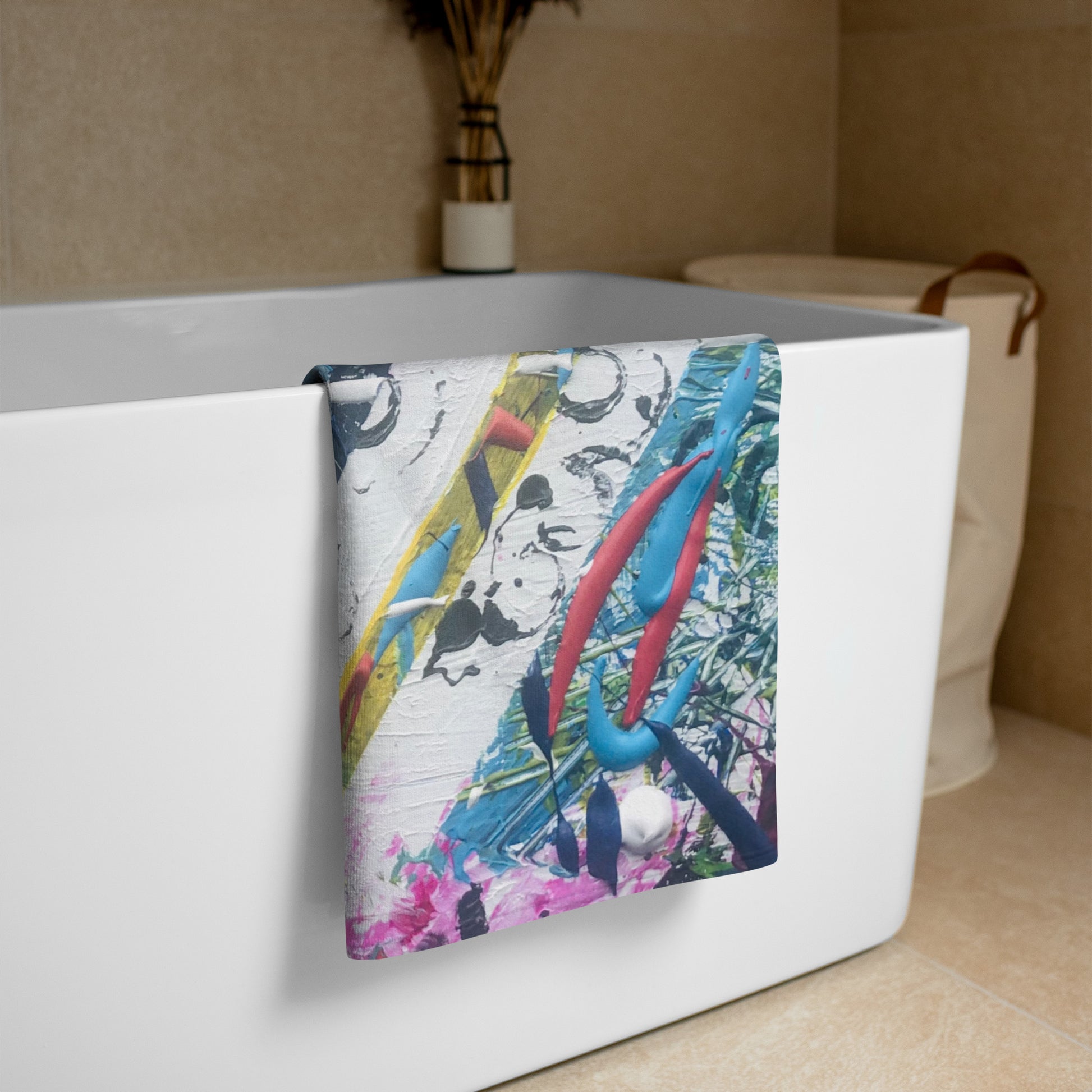 - The non-printed side is made of terry fabric, making the towel more water-absorbent